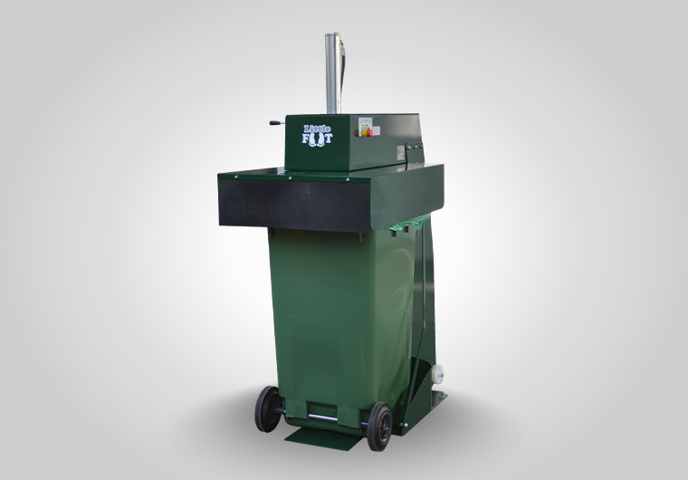 Deze afvalpers van 240 liter kan makkelijk op een rolcontainer worden geplaatst.